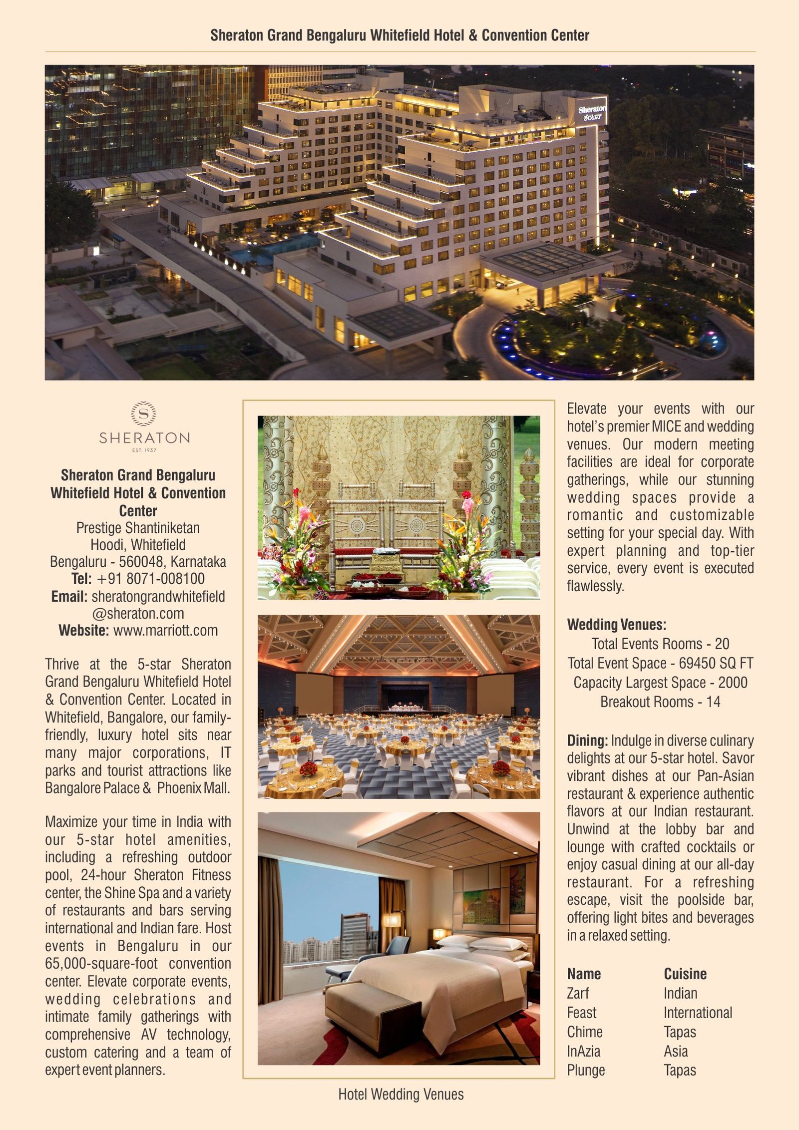 Email: sheratongrandwhitefield@sheraton.com
